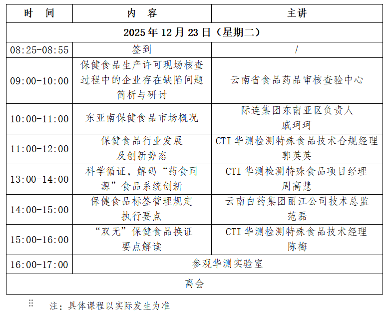 随着保健食品行业监管趋严、市场格局加速迭代,为帮助大家精准把握行业脉搏、规避合规风险、抢抓发展机遇,协会联合华测检测认证公司将在12月23日举办公益性的保健食品专项培训,聚焦市场现状、标签合规、双无换证等核心议题,助力从业者夯实专业能力、提升业务竞争力,现将具体事宜通知如下。