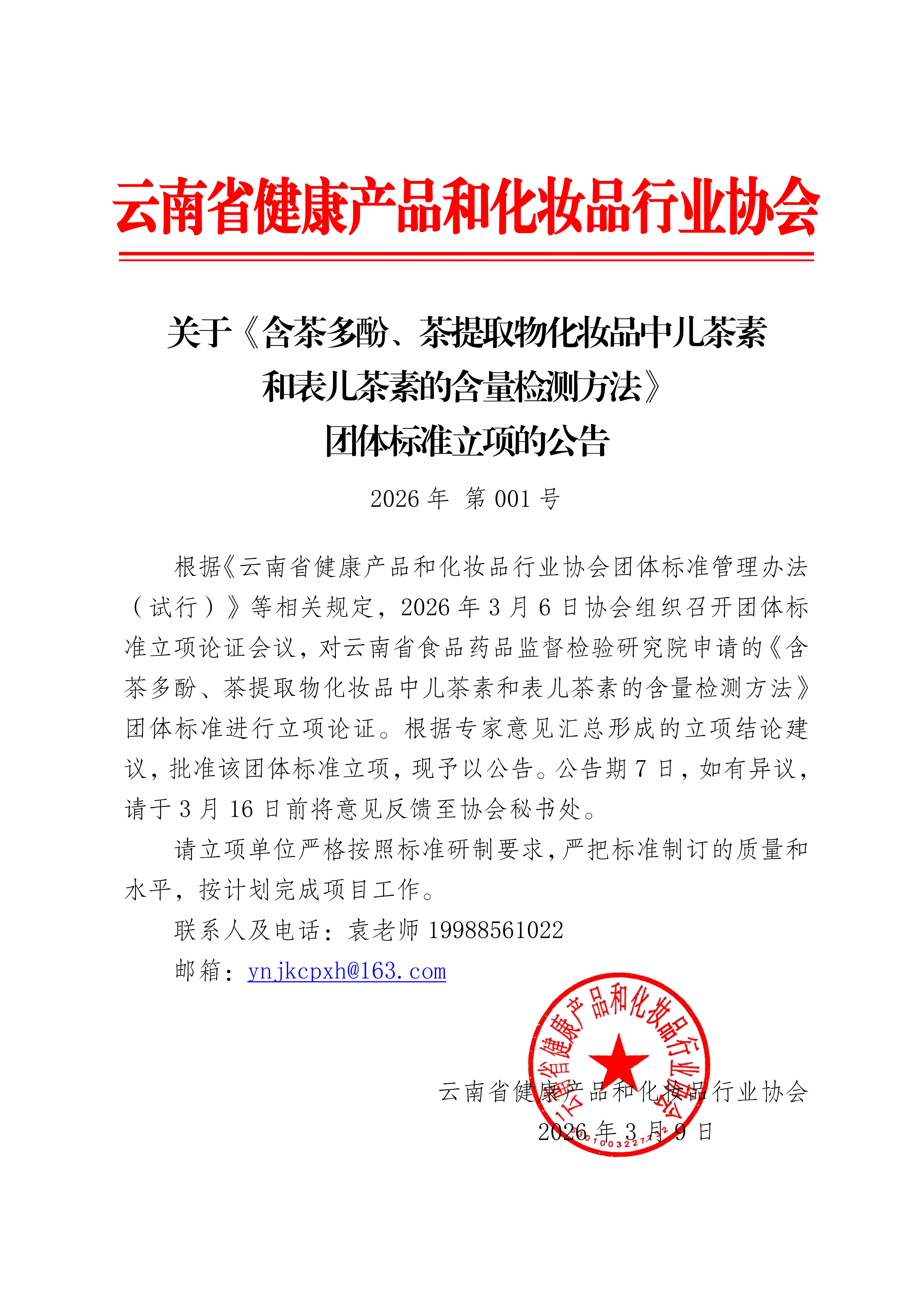 关于《含茶多酚、茶提取物化妆品中儿茶素 和表儿茶素的含量检测方法》团体标准立项的公告