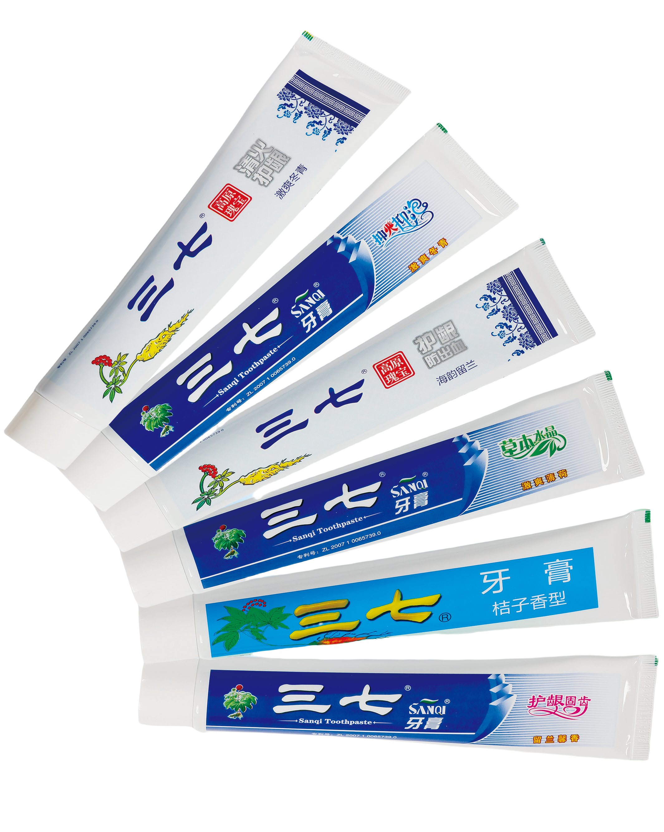 作为中草药牙膏领域的创新者,公司核心品牌 “三七牙膏” 独具特色。其源于《本草纲目》传统中草药理论,创新性将云南特产三七融入牙膏,突破单一清洁功能,实现 “消肿定痛、止血化瘀” 的口腔护理功效。自上世纪 70 年代起,公司持续研发,推出药物、光感瓷白、抗敏感等多系列产品,覆盖20g-200g不同规格,满足美白、护龈、清新口气等多样化需求,还获 “含三七提取物的牙膏及其制备方法” 专利。