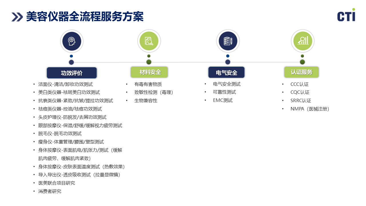 CTI华测检测提供全方位服务,始终以专业的技术、严谨的态度和高效的响应,助力企业从容应对市场挑战,把握发展机遇。我们愿与各界伙伴携手,共建安全、健康、可持续的品质未来,让信任成为连接世界的纽带。